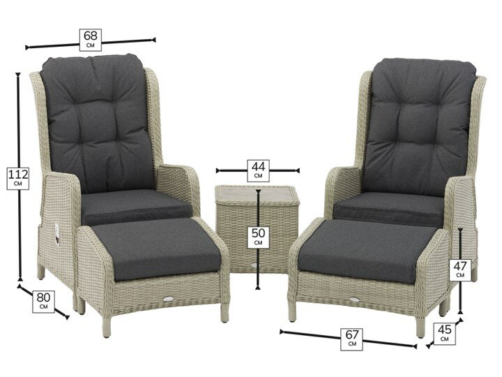 - Product DimensionsChair: H112 x W/D80 x L68, Table: H50 x W/D45 x L45, Footstool: H47 x W/D45 x L67