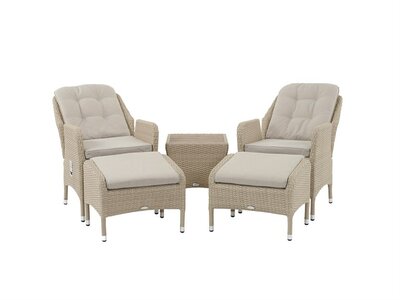 - Season-proof Eco seat cushions in Fawn Linen made from recycled plastic bottles