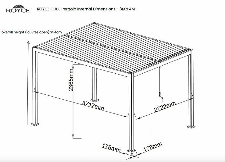 The Royce Cube 4m x 3m Rectangular aluminium pergola is cleverly designed to give you versatile, stylish shade from the sun or shelter from a rain shower when sitting, barbecuing or relaxing outdoors in your hot tub. Its two sided adjustable louvre roof lets you easily and quickly choose the right amount of cover you need, from full-on sunshine to shaded waterproof shelter, or anything in between.